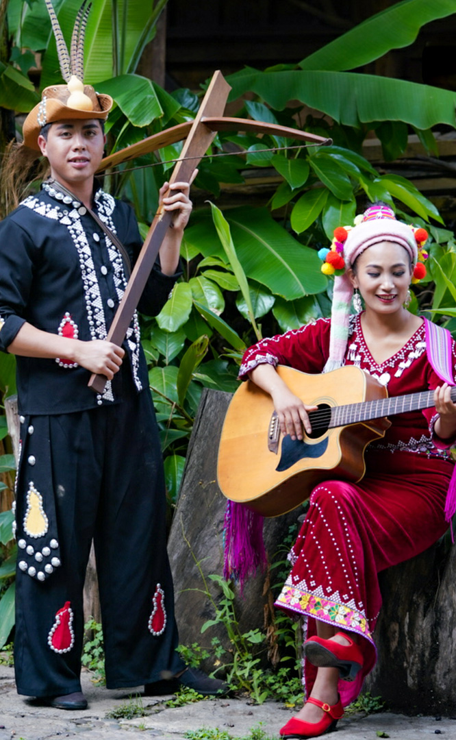 德昂族人口約1.7萬(wàn),主要分布在德宏州和保山市的潞西、梁河、瑞麗、隴川、隆陽(yáng)等縣區(qū)。民居多為草排覆頂竹木結(jié)構(gòu)的干欄式建筑,眼前的德昂村建筑納入了能容納數(shù)十人居住的德昂大房子,氈帽頂?shù)男》孔?,還有頗具浪漫色彩的大公房、小公房……還建有“龍陽(yáng)塔”標(biāo)志及佛教奘房、佛塔。德昂族民間普遍信奉南傳佛教,民俗活動(dòng)與佛事活動(dòng)關(guān)聯(lián)緊密。潑水節(jié)、開(kāi)門節(jié)、關(guān)門節(jié)是重大節(jié)日。德昂族服飾色彩豐富,口頭文學(xué)特別是民歌創(chuàng)作活動(dòng)...
